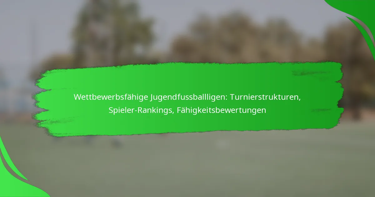 Wettbewerbliche Jugendfussballligen verwenden verschiedene Turnierstrukturen, die die Teamdynamik und das Wachstum der Spieler prägen, wobei Formate wie Rundenturniere und K.-o.-Runden unterschiedliche Erfahrungen bieten. Die Spieler-Rankings werden durch Leistungskennzahlen und Fähigkeitsbewertungen festgelegt, die individuelle Beiträge widerspiegeln und zukünftige Möglichkeiten beeinflussen. Darüber hinaus sind Methoden zur Fähigkeitsbewertung, einschließlich Übungen und Bewertungen, entscheidend, um die technischen, taktischen und physischen Fähigkeiten der Spieler zu identifizieren.