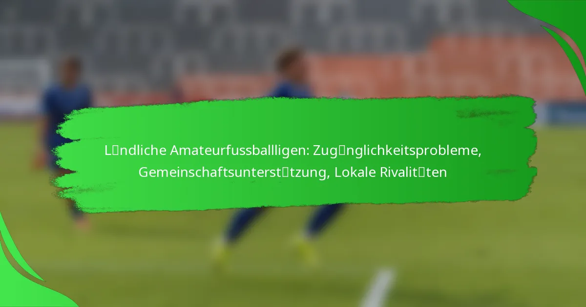 In ländlichen Amateurfußballligen gibt es einzigartige Zugänglichkeitsprobleme, darunter Transportfragen und begrenzte Einrichtungen, die die Teilnahme von Spielern und das Engagement der Fans beeinträchtigen können. Die Unterstützung der Gemeinschaft ist für diese Ligen von entscheidender Bedeutung, da sie lokale Talente fördert und die Gemeinschaftsbande stärkt. Darüber hinaus sorgen lokale Rivalitäten für Aufregung und fördern den Stolz, wodurch eine lebendige Atmosphäre entsteht, die das Gesamterlebnis für Spieler und Unterstützer gleichermaßen verbessert.
